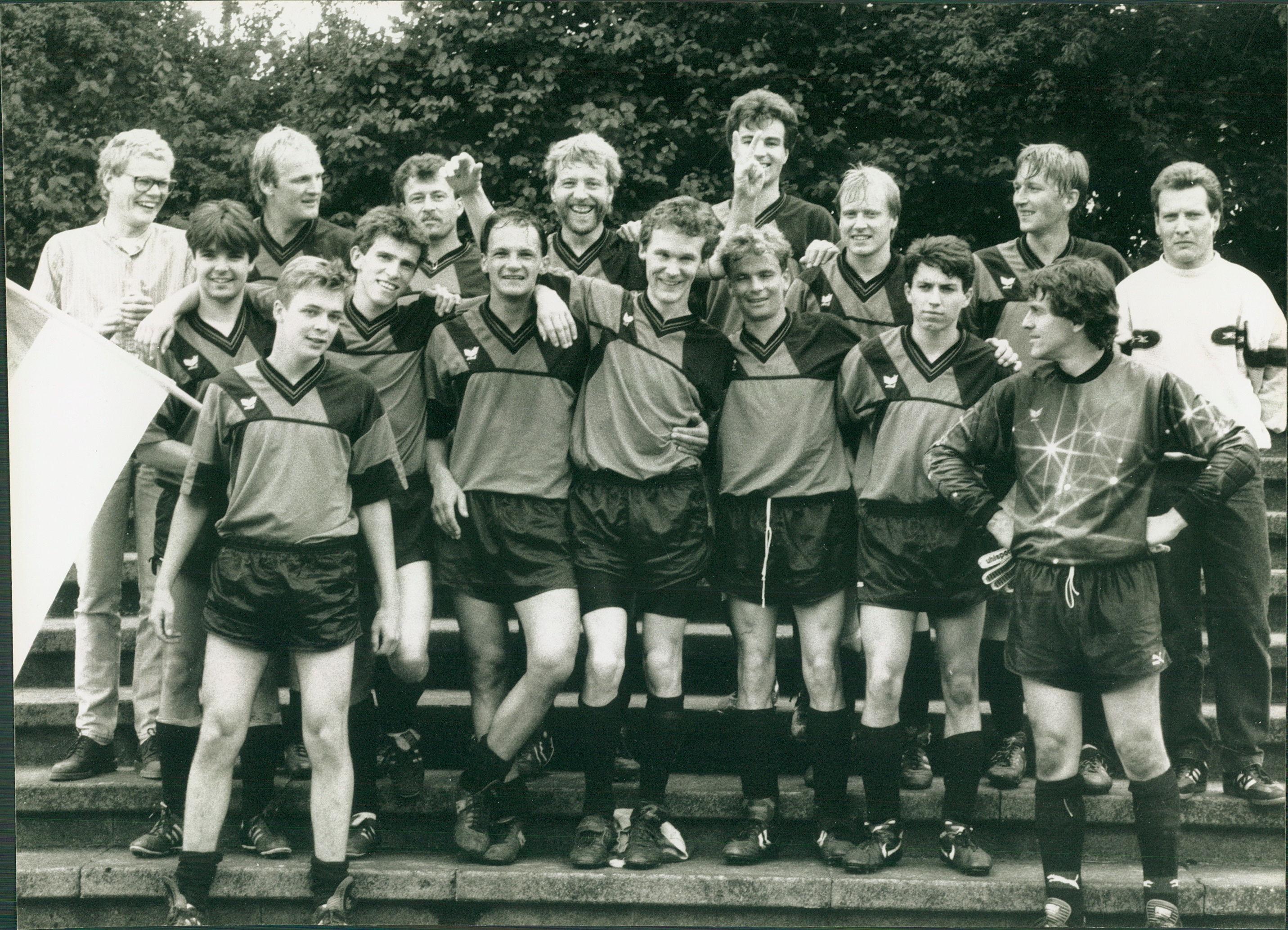 Die Aufstiegsmannschaft von Spielertrainer Hans Danner - hinten, von links: Kai-Uwe Paul, Ludger Raude-Roberg, Jürgen Richter, Jörg Weinhorst, Edgar Fels, Hartmut Ebke, Friedhelm Kämper, Volker Kirchhoff; Mitte: Peter Damaschek, Volker Niemann, Andreas Glootz, Ralf Milsmann, Thomas Kisker, Stefan Wenzel, Hans Danner; vorne: Andreas Berndt.