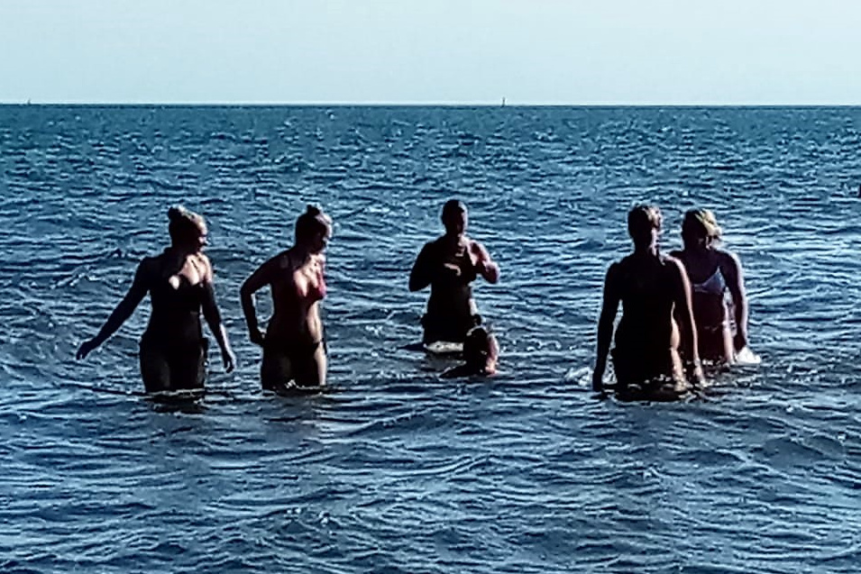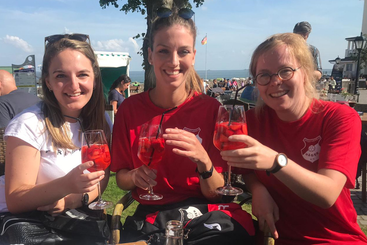 Nachdem die Altherrenmannschaft der Insel Föhr einen Besuch abgestattet hatte, verbrachten am Pfingstwochenende nun die Damen ein paar schöne Tage auf dem Nordsee-Eiland. Diese sorgten bereits bei der Anreise aufgrund ihrer einheitlichen T-Shirts für Aufsehen. Nach der Ankunft hielt es niemanden davon ab, trotz der kühlen Wassertemperaturen, ein Bad im Meer zu nehmen.
