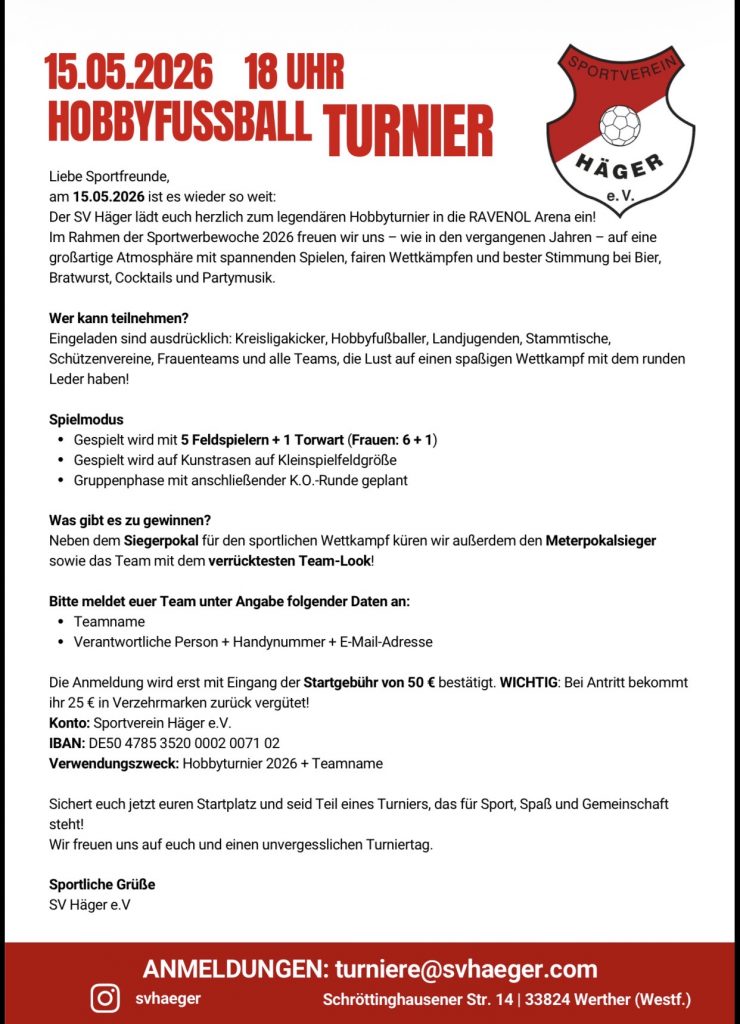 Nach der Absage aller Liga- und Freundschaftsspiele bis zum 30. April folgt der SV Häger den Empfehlungen des Fußballkreises und der Experten, […]